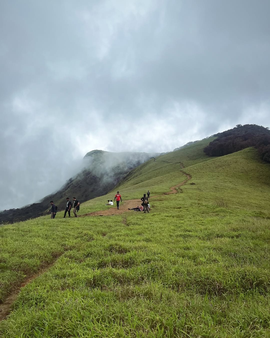 - •Pack your essentials and packed lunch, then head to the Kudremukh trek starting point. After getting your forest entry permits checked, start your trek through rolling green hills, sparkling streams, dense shola forests, bamboo trails, and wide open grasslands — a perfect blend of nature’s best views.